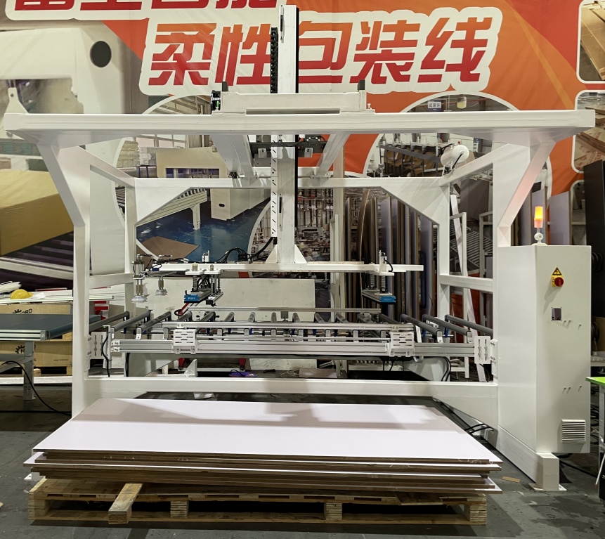 1.準備準備:労働者は、機器の給餌ラックに、処理された木材ベースのパネルのパレット全体を配置します。ラックのリフティングプラットフォームは、自動的に最初のつかむ高さに適応します。